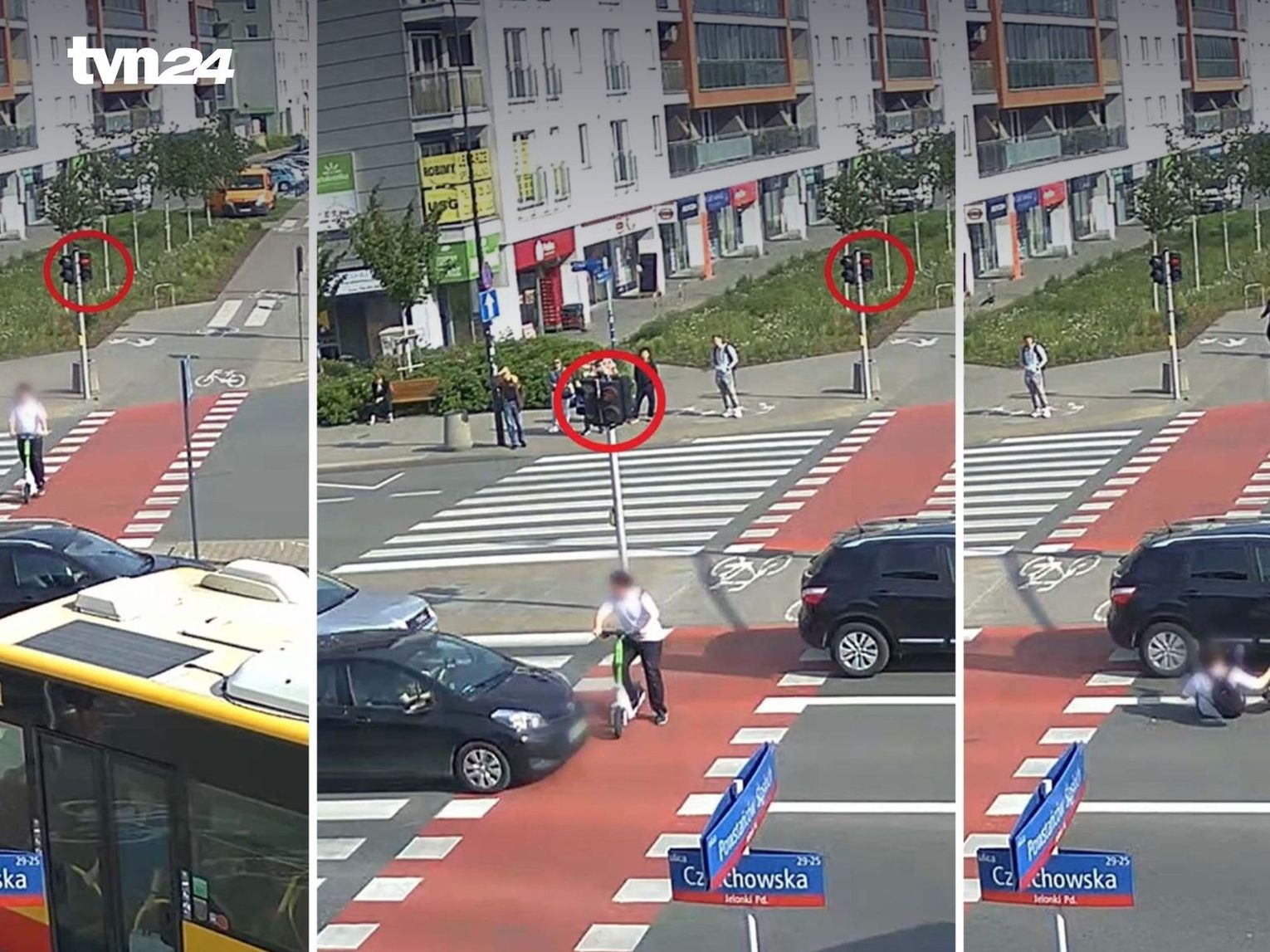 Policjanci ustalili uczestników dzięki nagraniom z monitoringu miejskiego oraz danym przekazanym przez firmę wypożyczającą hulajnogę. Okazało się, że sprawcą był 20-latek, który zignorował sygnalizację świetlną.