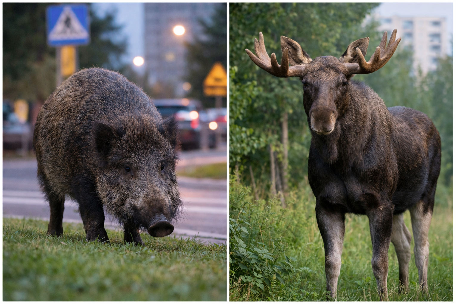 Na obrzeżach miasta oraz w pobliżu terenów zielonych zdarzają się również spotkania z dużo większym zwierzęciem – łoś. Choć są one rzadsze, to właśnie łosie mogą stanowić szczególne zagrożenie ze względu na swoją masę i nieprzewidywalność.