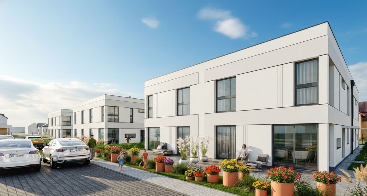 To nowoczesne osiedle domów dla rodzin, które szukają czegoś więcej niż tylko czterech ścian. Każdy dom oferuje aż 142 m² funkcjonalnej przestrzeni oraz prywatny ogród, ale prawdziwą wartością tej inwestycji jest to, co znajduje się pomiędzy budynkami.